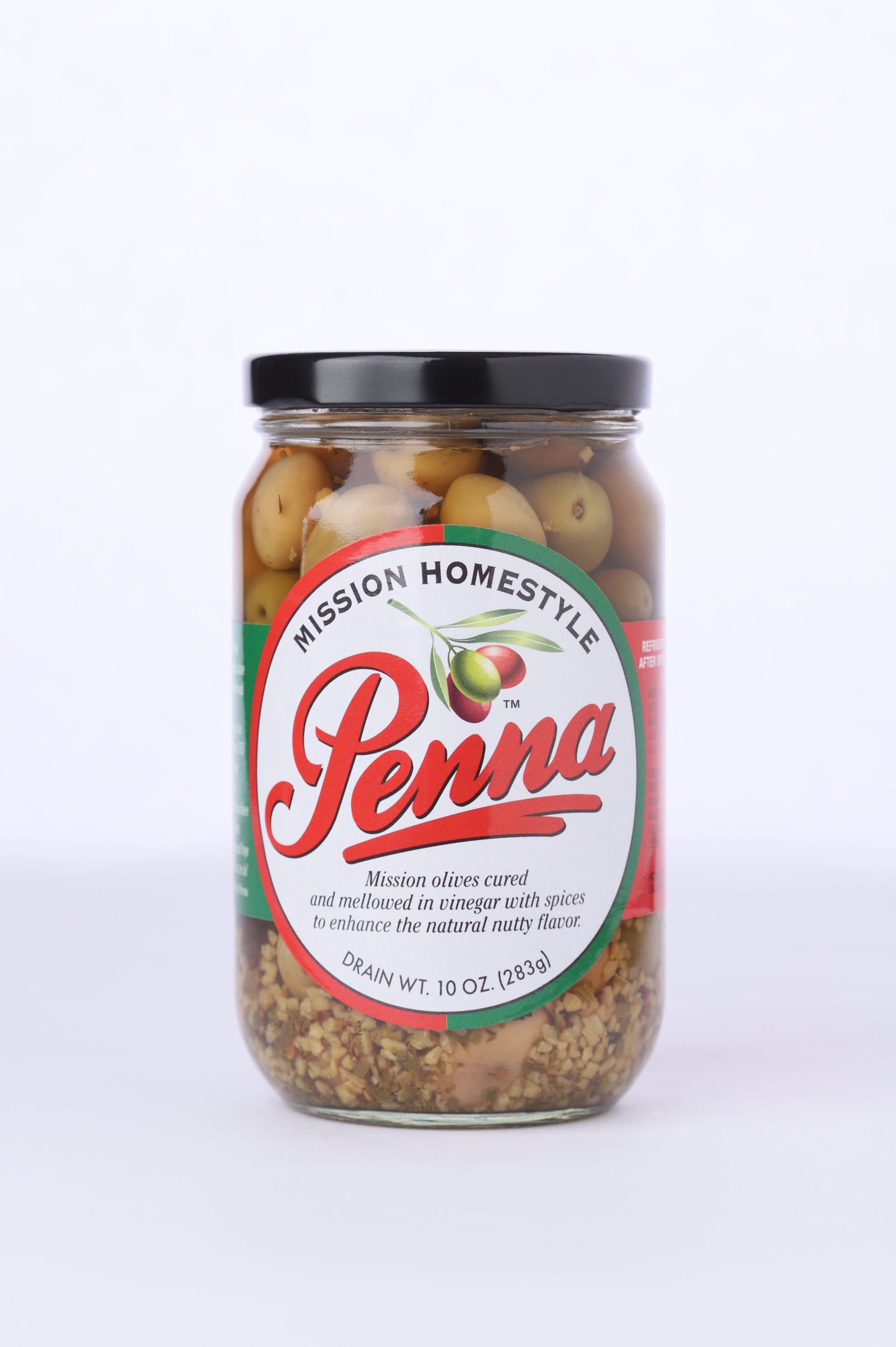 Experience Penna’s Mission Homestyle Olives, expertly cured and mellowed in vinegar with select spices to enhance their natural nutty flavor. These homestyle Mission olives offer a bold, tangy bite that pairs perfectly with a variety of dishes. Buy Mission olives in a convenient 16 oz jar or a case of 12 and bring a taste of tradition to your table.